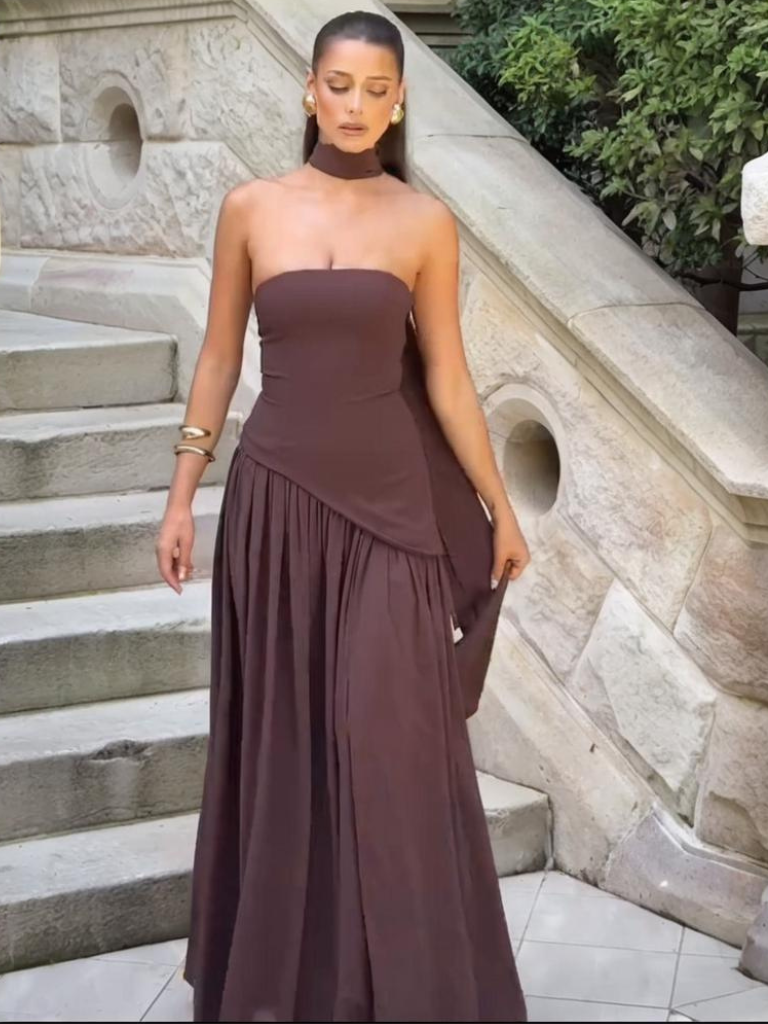 Bereit für einen unvergesslichen Auftritt? Das La Lumière Kleid vereint klassische Eleganz mit einem modernen, verführerischen Schnitt. Die raffinierte asymmetrische Drapierung, der hohe Beinschlitz und der abnehmbare Choker verleihen diesem Kleid eine luxuriöse, red-carpet-würdige Ausstrahlung. Perfekt für besondere Anlässe, Gala-Abende oder elegante Dinner-Dates.